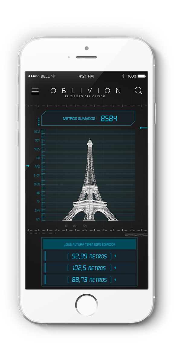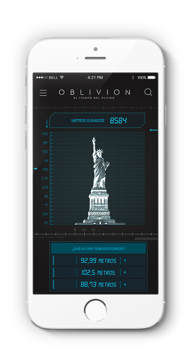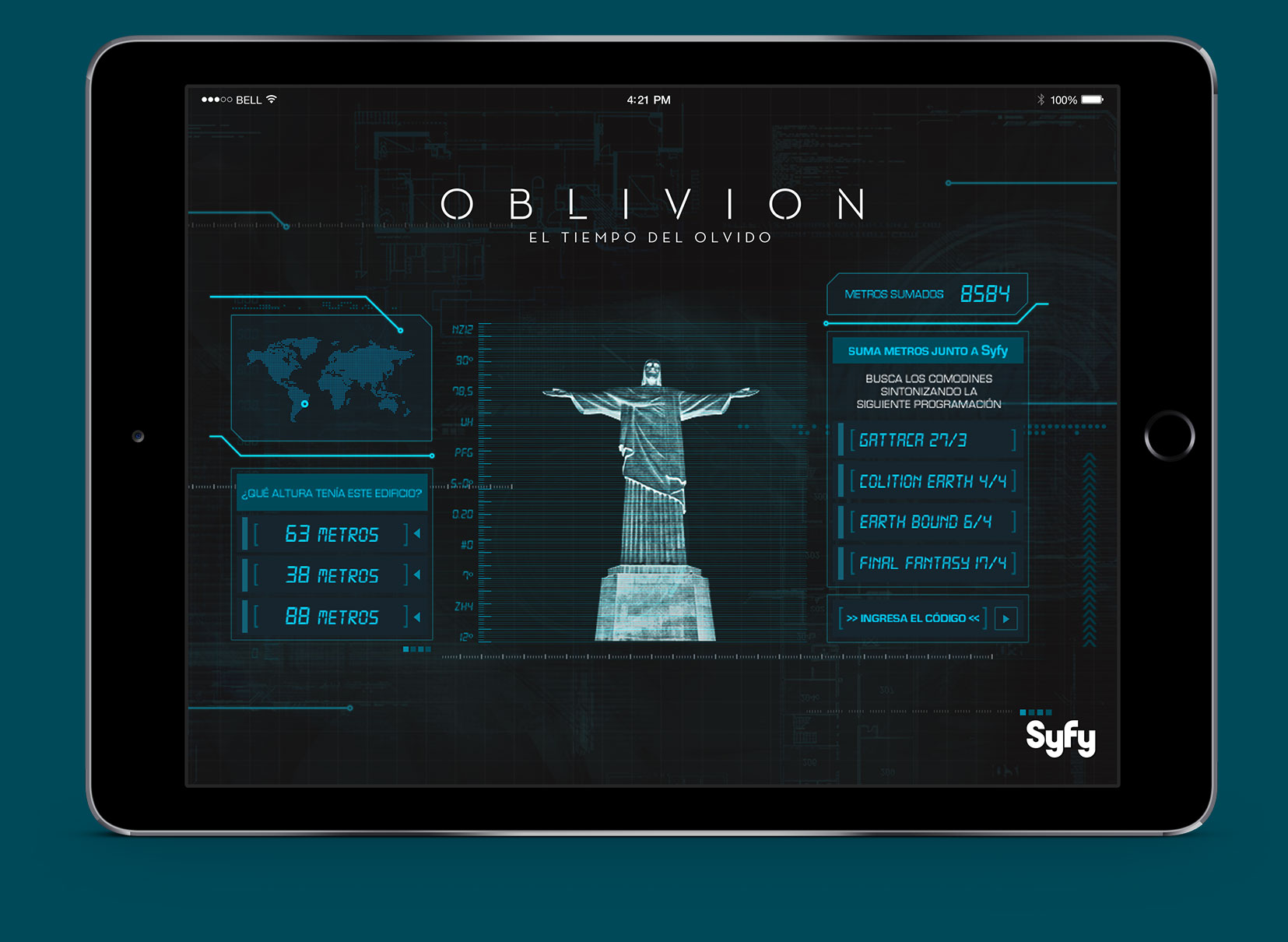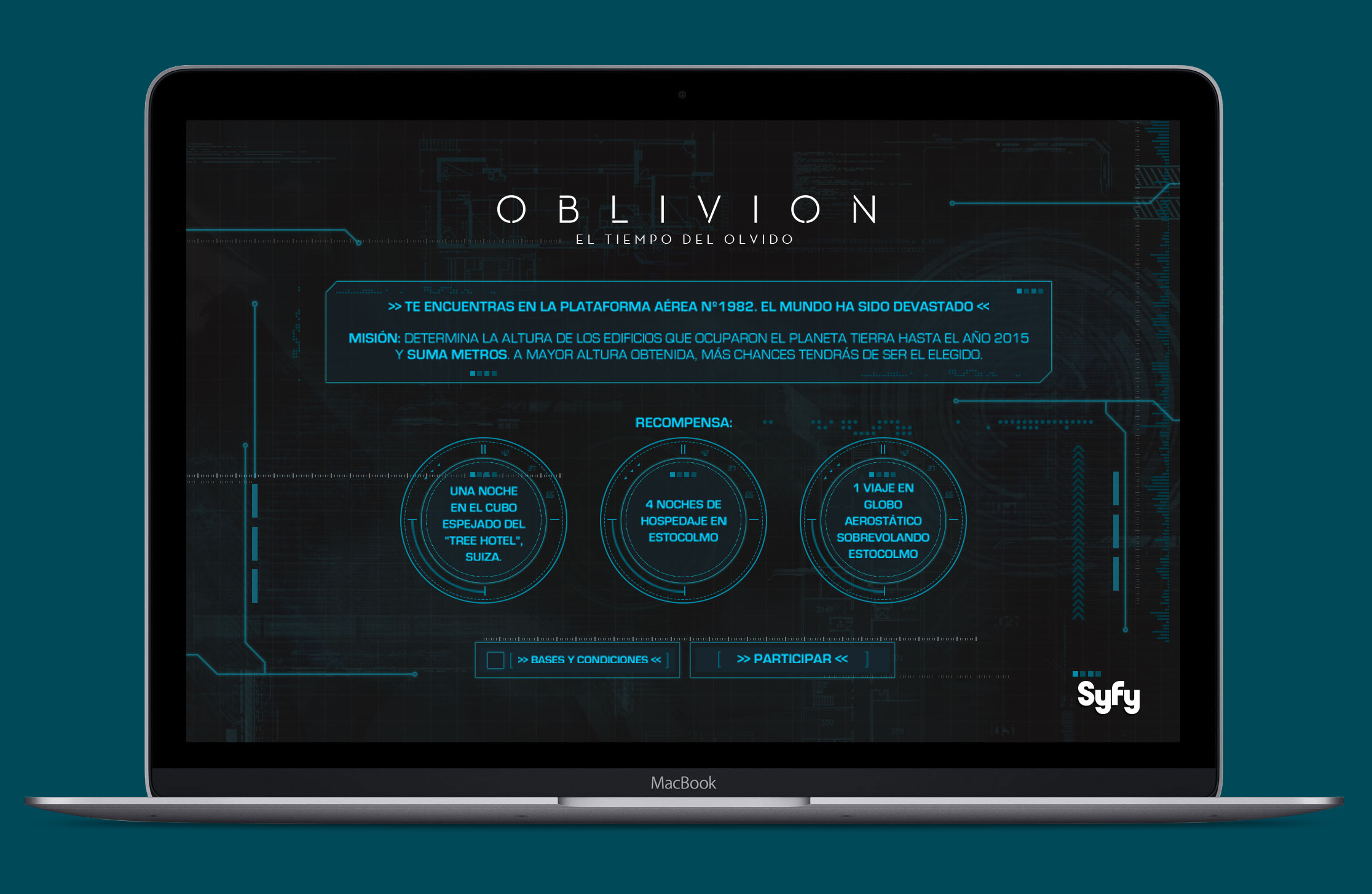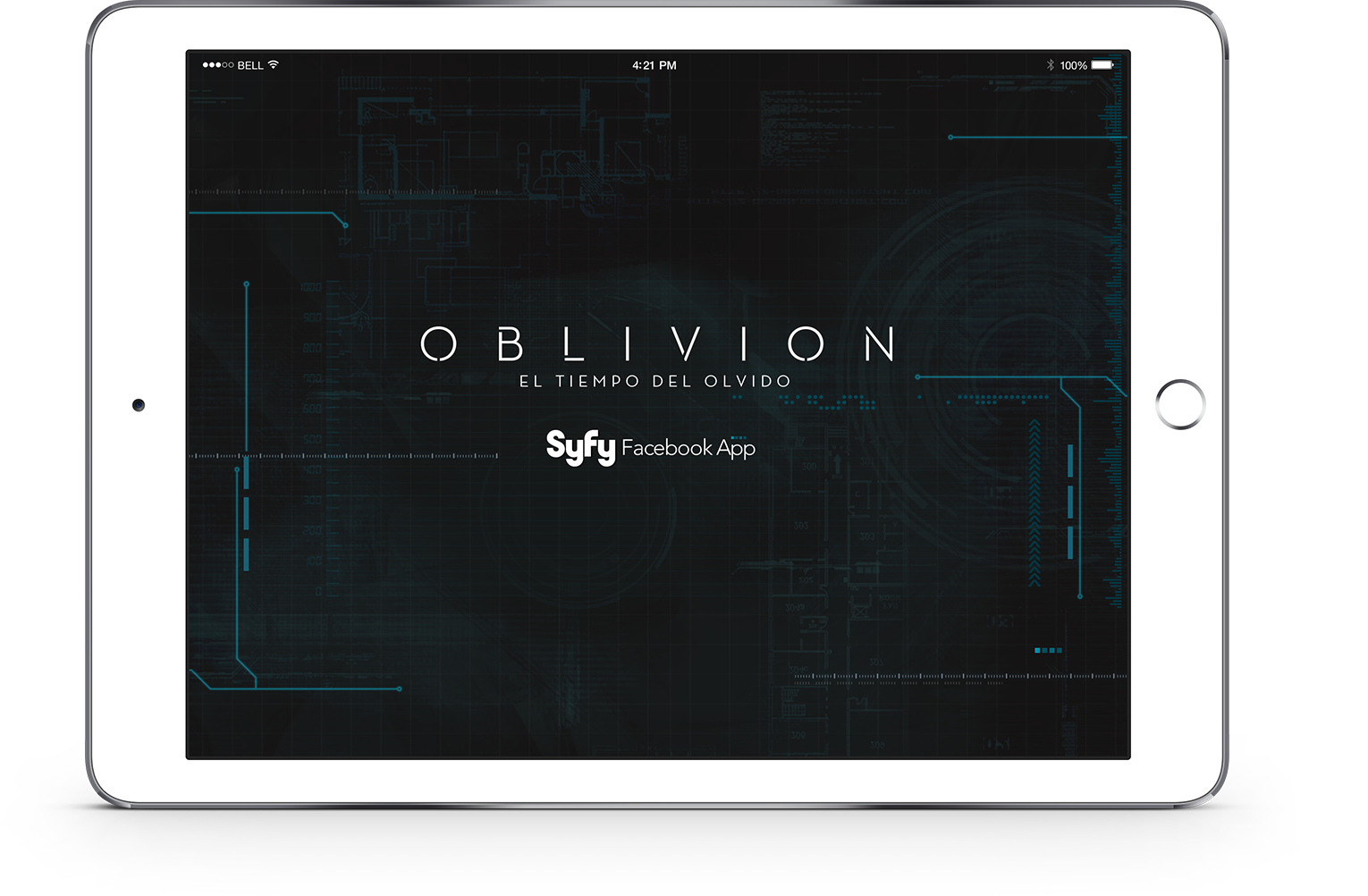 App designed for the Facebook page of the Syfy Channel (NBC), focused on the theme of the movie Oblivion.